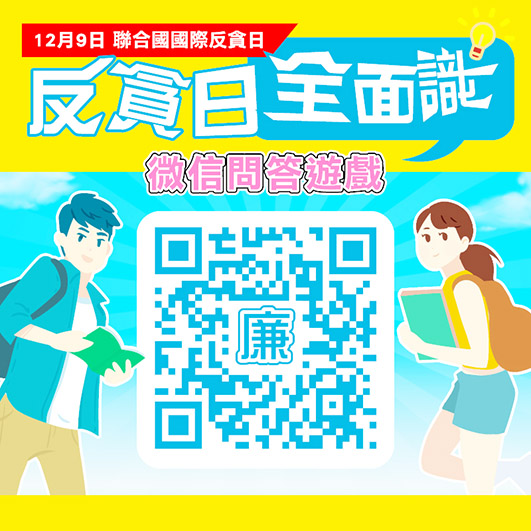 【特訊】廉政公署舉辦“反貪日全面識”微信問答遊戲,期望大眾透過參與遊戲,加深對廉署及《聯合國反腐敗公約》的認識,持續爭取市民支持澳門廉政建設工作。