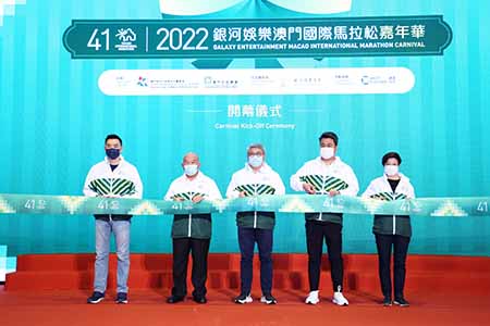 開幕儀式昨日下午於「百老匯舞台」一樓舉行,由特區政府體育局局長潘永權先生、副局長劉楚遠先生及林蓮嬌女士;澳門田徑總會監察委員會主席吳煜棠先生;銀娛總辦事處高級副總裁林志成先生等擔任主禮嘉賓。潘永權先生於致辭時表示:「今天開幕的『2022銀河娛樂澳門國際馬拉松嘉年華』為馬拉松賽事增加了更多不同的元素和亮點,同時充份發揮本澳體育盛事的聯動效應,助力各行業復甦。謹代表賽事組委會感謝銀河娛樂集團的大力支持,令賽事增添色彩。」
