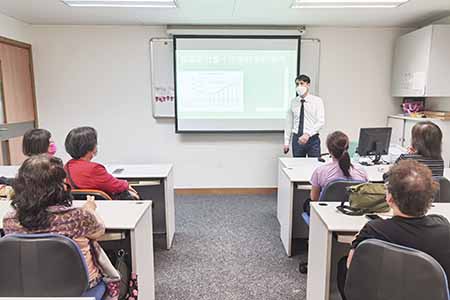 講師首先為義工簡單介紹人生週期和老化過程,並設有互動和討論環節讓參加者分享他們的願景。透過認識老化過程,從而更易引申到長者所面對的壓力,包括身體機能變差、角色和生活的轉變、經濟壓力、伴侣或朋友的離世和失眠等問題,講師就這些問題提供了正、負面心態的對比,亦指出不同心態會影響情緒和心理健康,並以退休生活的得與失作對比,了解到退休生活雖然失去了以往的生活常態,卻也得着了很多東西,例如時間和自由。講師還著重為長者面對睡眠障礙和親友的離去時,提供了提高睡眠質量和調適心情的方法,幫助長者能以正面的態度去面對和適應退休生活。