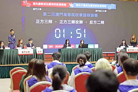 【特訊】為紀念澳門基本法頒佈三十週年,同時令澳門學生認識憲法和基本法以及關心社會,澳門基本法青年推廣大使協會和澳門演辯學會聯合主辦「與《憲法》和《基本法》同行—第二屆澳門高等院校華語辯論賽」及「與《憲法》和《基本法》同行—第二屆澳門中學華語辯論賽」日前於科學館舉行決賽,評判團對參賽學生水平給予充份肯定。