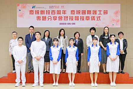 【特訊】鏡湖護理學院於本月五日於離島醫療綜合體校址舉行慶祝創校百周年系列活動「升掛國旗儀式」及「專題分享會暨授帽授章儀式」,以慶祝五四青年節及國際護士節,勉勵師生奮發圖強,珍惜青春年華,牢記護理初心,透過專業力量為國家、澳門無私貢獻。活動有全校師生及嘉賓約四百六十人參與。