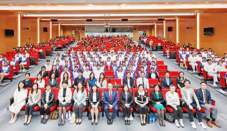 鏡湖護理學院院長尹一橋表示,今年的專題講座和授帽授章嘉賓都是該學院不同年代的優秀畢業生,是推進澳門護理專業發展的角色模範,更是鏡湖護理學院優質教育薪火相傳的具體呈現。她提到,今年國際護士節主題是「我們的護士,我們的未來」,護理的未來,既要有資深前輩的推動,也要有青年新血的加入,祈望護理學生透過授帽授章儀式,不僅強化對護理專業和母校的認同感、使命感和責任感,更要緊記南丁格爾無私奉獻和學院「從人到仁」的精神,裝備好自己,推動全民健康和福祉努力,共同創造未來,提升護士的價值。