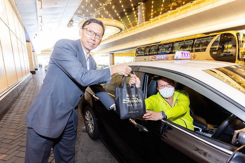 當天中午,澳門金沙酒店一眾員工向到達這家酒店及娛樂綜合體的計程車司機派發窩心午餐,餐盒菜單包括石斛花旗参海螺老雞豬骨湯、葱油貴妃雞、XO醬蜜豆黃耳炒花膠蝦仁帶子、周年壽桃包及蘋果。