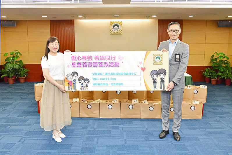 【特訊】為加強警隊文化建設,提升警隊人員的社會責任感和關愛精神,推動警民合力構建關愛共融社會,向大眾傳遞積極、正面訊息,司法警察局與澳門展智服務協會早前合辦慈善義賣活動,最終籌得逾22,000澳門元善款,並於2023年8月3日舉行善款支票移交儀式,將有關善款贈予上述康復服務團體。近兩年,司警局派員走訪本澳各康復服務團體,聽取各團體代表對治安方面的訴求,以及探討深化與各康復服務團體的合作。為支持康復服務團體協助復康人士融入社會的措施,司警局今年6月起於局內員工餐廳闢設義賣點,義賣由復康人士製作的精美手工禮品,計劃持續為不同康復服務團體義賣籌款,以激發工作人員關心社會及弱勢群體需要,同時為康復服務團體籌募善款。