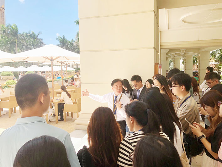 其中,銀娛先後接待了來自世界各地近 50 間大專院校、來澳參與「2023 年澳門大學合作院校優秀學生夏令營」的優秀學生,以及與澳門大學進行交流互訪活動的北京大學師生。在銀娛公共關係部及人力資源部代表親身帶領下,兩個交流團分別參觀了銀娛旗下「澳門銀河™」綜合度假城一系列綜合休閒娛樂設施,包括廣受歡迎的天浪淘園與多個酒店品牌,以及銀河國際會議中心、銀河綜藝館等全澳門最嶄新的會議展覽及娛樂表演場地與設備;亦特意組織款客事務及會展銷售部、貴賓司膳服務部、工程事務部等多個部門的團隊成員向其介紹各項設施的運作模式,分享自身專業知識及實務經驗,並與學生展開交流互動,讓其從中了解銀娛「傲視世界 情繫亞洲」的理念,並深入認識澳門作為「世界旅遊休閒中心」發展定位的豐富「旅遊+」元素,現場氣氛活躍熱鬧。
