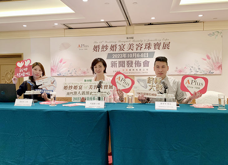 由藝嘉國際有限公司主辦之「婚紗婚宴美容珠寶展」即將舉行,昨午召開新聞發佈會介紹展覽詳情。據悉,是次展覽參展商戶三十八家,展位達六十八個,當中港台及海外參展商戶超過四成,本地參展商戶約佔六成。今屆展覽除包括澳門多間豪華酒店星級婚宴、婚禮策劃、場地佈置、珠寶首飾、喜餅回禮、婚紗攝影、海外婚攝等配套服務之外,大會更特設購物消費三千元大奬賞,網上預先登記送禮餅、純銀頸鏈、耳環、杯、精美餐具等,參加者更有機會贏取富豐厚禮,獎品除各大酒店尊貴套房之外,凡於展館現場消費滿三千元,首十對情侣立即獲得回贈五百元現金,並可參與消費三千元終極大獎贏取精美戒指,獎品總值超過五十萬澳門元。