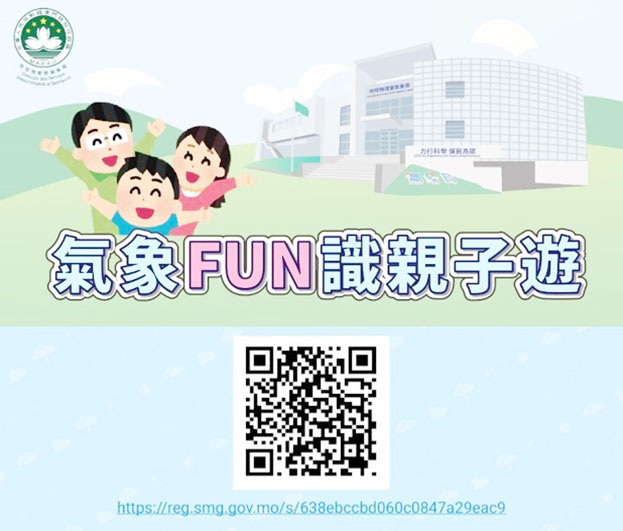 最新一期的「氣象FUN識親子遊」將於10月21日(星期六)舉行,活動費用全免,歡迎本澳4至8歲兒童及其家長參與,報名以家庭為單位,每組家庭可登記2至5人,歡迎家長於10月5日至9日登入活動登記系統進行報名,名額約50人,若報名人數超過招募數量,將採用電腦抽籤方式決定,活動詳情可瀏覽氣象局網頁 https://www.smg.gov.mo/zh/news-detail/503 。