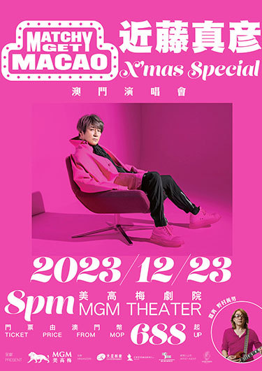 演出時間: 2023年12月23日(星期六) 晚上8點。 演出場地:美高梅劇院(澳門路氹體育館大馬路美獅美高梅)。 美高梅官網 / 售票處 票價:澳門幣688、888、1,388及1,988元