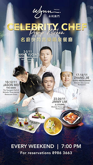 如需預訂或查詢,請致電:(853) 8986 3663。更多詳情,請瀏覽網站:https://www.wynnresortsmacau.com/zh-hk/wynn-macau/offers/wm-guest-chef