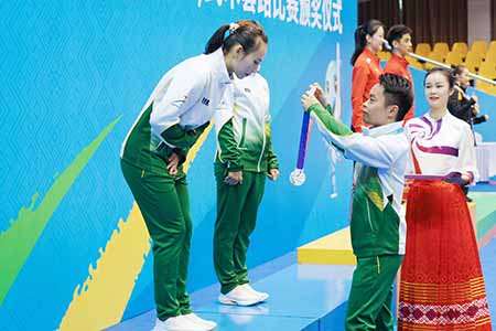 比賽於昨日(8)日上午在廣西壯族自治區體育館進行,澳門運動員王泳欣與四川省選手同獲9.670分,計算細分後以第二名奪得大學組女子自選劍術項目銀牌。在頒獎台上,王泳欣在澳門體育代表團副團長、教育及青年發展局副局長丁少雄手中接過銀牌。王泳欣已經全部完成今屆學青會的賽事項目,個人共收穫一金一銀。