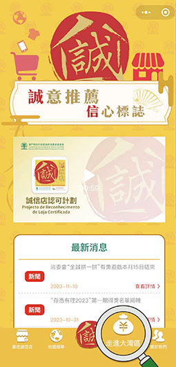 「誠信店」小程序資訊豐富、功能多元,為加強對大灣區居民來澳跨域消費的保障,消委會特別在小程序內設「走進大灣區」專區,並率先發佈「來澳旅遊消費提示」,讓大灣區內地居民來澳旅遊消費時,有更多維權信息以供參考,加強維權的能力,增加跨域消費的信心。