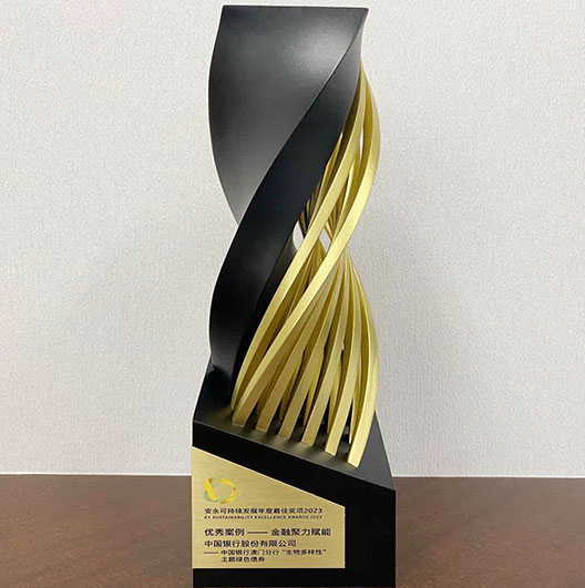 澳門中銀發行的生物多樣性綠色債券是全球首筆金融機構根據《綠色債券原則》發行,主要為華中、華北、西南及華東多個地區具有環境效益的項目提供資金支持,包括生態建設示範、生態修復、生態 水網、國家森林儲備和低效率低產林改造等多個具有生物多樣性保護效益的項目。該債券亦獲知名國際財經雜誌《財資》頒發年度中資最佳金融機構綠色債券獎項,本次再獲獎是對澳門中銀在綠色金融、可持續發展領域取得卓越成就的高度肯定,也再次證明了澳門中銀在綠色發展方面的領先地位。