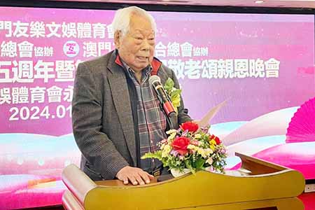【特訊】由友樂文娛體育會主辦、街坊總會和工聯總會協辦「友樂頌親恩敬老聯歡晚會」。友樂文娛體育會永遠會長文漢表示,晚會目的是推動社會關愛和尊敬長者,會上向出席宴會最年長的六位長者送上吉祥金座。街坊會聯合總會會長吳小麗表示,街總成立四十年來致力為居民提供多元化社會服務,發揮官民橋樑作用。她表示,橫琴「澳門新街坊」的長者服務設施正在籌備。未來將會繼續支持舉辦敬老活動,推動長者服務高質量發展,積極在澳門及灣區各地開展服務。