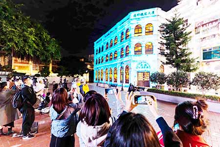 澳門科學館前地和氹仔消防局前地的光雕表演於即日至2月25日期間,晚上7時至9時30分上演,每30分鐘一場,每場展演約8分鐘;設於路環聖方濟各聖堂的光雕表演於即日至2月25日期間,晚上9時、9時15分及9時30分上演,每場展演約8分鐘。