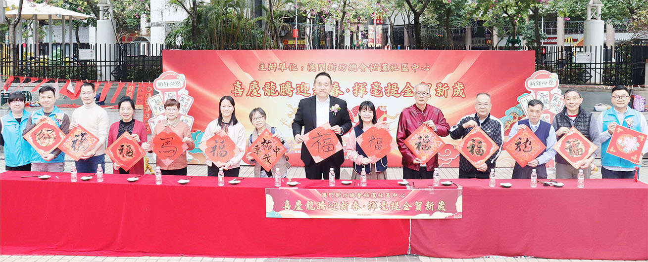 活動邀請了群力智庫副理事長兼澳門立法會議員顏奕恆、澳門馬黑祐坊會副理事長兼秘書長胡紅、澳門街坊總會北區辦事處社區工作幹事林少紅、街總祐漢社區中心主任洪偉東、澳門輔具資源中心主任施敏、澳門街坊總會健樂生活站市場拓展部經理陳洪華以及一眾書法導師主持開筆儀式。