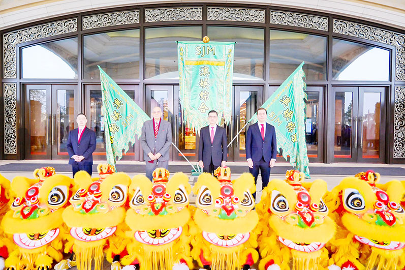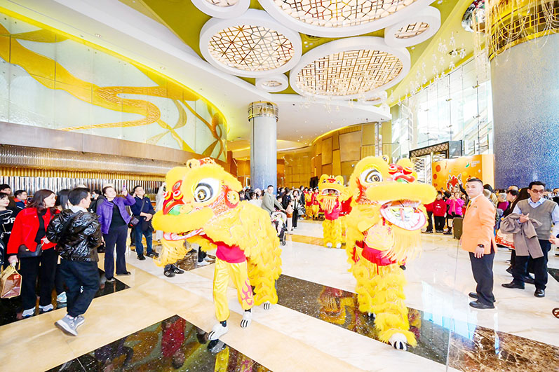 澳娛綜合秘書長官樂怡大律師、首席營運總監卓河祓、首席企業事務總監沈銘義,以及副秘書長馬德龍主持醒獅點睛儀式,活力充沛的醒獅隊伍在鑼鼓聲和爆竹聲中,分別巡遊新葡京和上葡京,沿途向市民、旅客和商戶送上澳娛綜合的新春祝福。