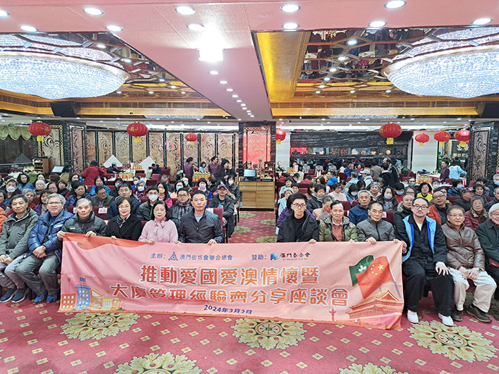 【特訊】為培育和增進大廈業主的愛國情感,增強認識國家觀念和灣區發展,街坊總會近日舉辦了“推動愛國愛澳情懷暨大廈管理經驗齊分享座談會”, 活動分兩部分進行,上半場邀請到廣東省政協委員陳家良出席講解整個灣區乃至廣東省的發展和理念,下半場則由大廈業主們對大廈管理經驗作分享和探討。