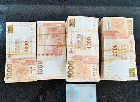 這名男子五月五日早上,經拱北口岸粵澳兩地牌車隨車旅客驗放廳無申報通道入境內地,胸前斜揹隨身包,關員截查後在袋內查獲百二十萬港元現金,折合人民幣約一百一十一萬四千元。