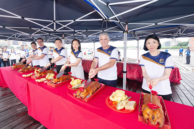 儀式在南灣湖水上活動中心舉行,銀娛人力資源及行政集團董事呂慧玲女士、星際酒 店營運副董事李福成先生、零售行政副總裁黃興齡女士、酒店及會展營運行政副總裁 柯岩松先生、人力資源及行政部副總裁及銀娛員工康樂會主席劉影先生等出席,為分 別名為「銀河之星」、「銀河明珠」、「銀河宇宙」、「銀河之光」、「銀河鳳凰」 及「銀河慧星」的參賽龍舟祈福、進行淨身及開光點睛;並與銀娛龍舟隊隊員一起進 行切燒豬儀式及派發吉祥利是,勉勵其在今屆賽事中再接再厲,力爭佳績。