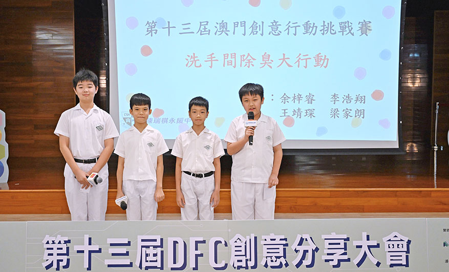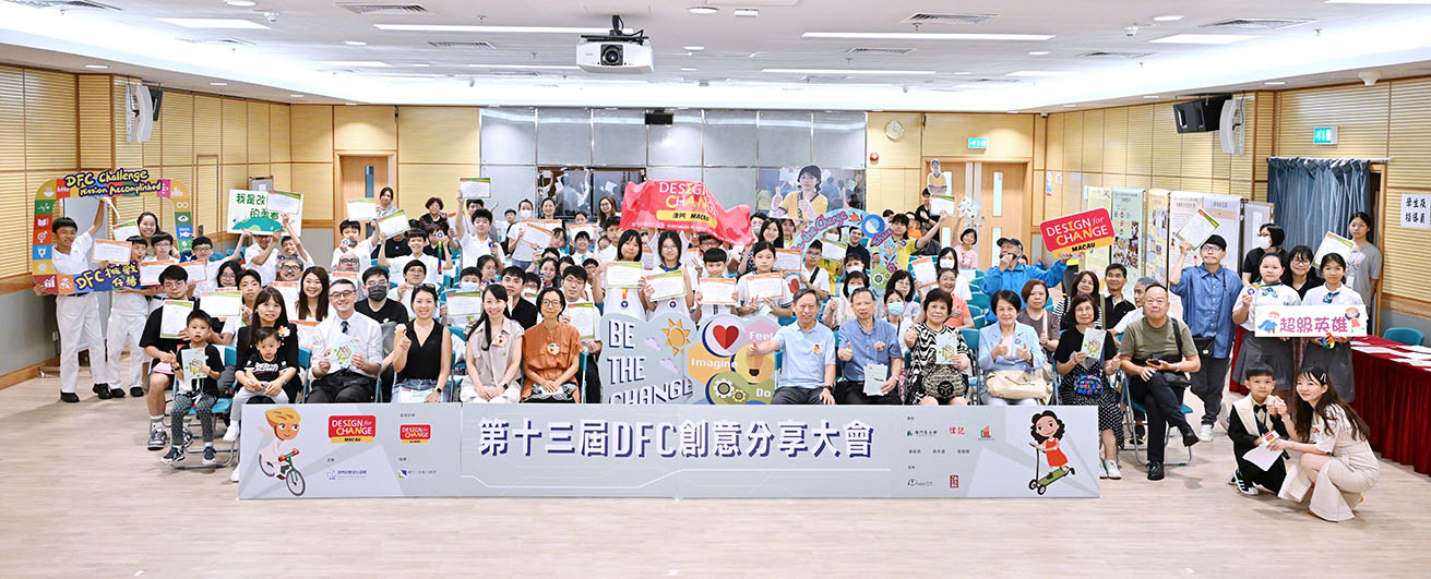 DFC(Design for Change)是一個全球創意活動,澳門由 2012 年開始舉辦,今年已是第十三屆。DFC 鼓勵參加者透過感受、想像、實行及分享四個步驟,用創意方法去改善身邊的問題,從而培養同理心,建立「我做得到」的自信心及提升解決問題的能力。今屆共收到五十七份作品,參賽學生有一百九十六人,指導員有四十人,他們的創意行動影響約兩萬人,學生年齡橫跨七至十七歲,當中有十四間學校參賽。
