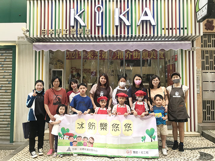 是次活動共吸引10對親子參與,共約20人,活動當天,由中心工作員帶領參加者一同到達位於澳門大堂區內之手工雪糕店進行雪糕製作體驗,活動前,親子們依序進行手部清毒、穿戴工服、認識雪糕製作所需材料,以及雪糕機器運作方式等相關知識,再由導師細心指導下,一同學習並參與到雪糕製作流程中,過程中,親子們表現認真投入,並耐心等待雪糕成品,於活動後半部份,小朋友們更是充當小店員,現場體驗挖掘雪糕球,與家人一同分享美味。