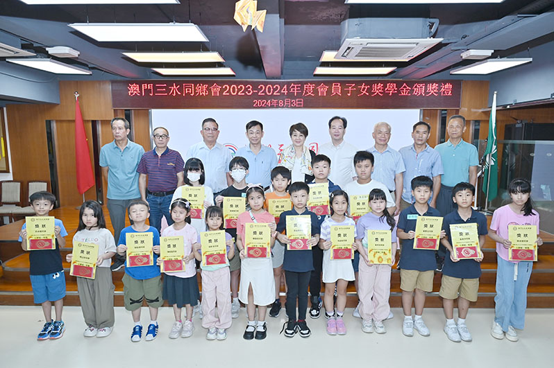 【特訊】澳門三水同鄉會於8月3日舉行2023-2024年度會員子女獎學金頒獎禮,今年榮獲獎學金的會員子女共99人,包括:大學甲等獎3人,中學甲等獎20人,小學甲等獎20人;大學乙等獎4人,中學乙等獎21人,小學乙等獎31人。同鄉會冀通過頒發獎學金,激勵會員子女繼續勤奮學習,努力向上,長大成才,做一個具理想、有能力、敢擔當、肯奉獻的人,為澳門、為國家,發光發熱。