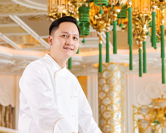 朱光盼總廚擁有多家米芝蓮星級餐廳及知名奢華酒店工作經歷,在加入永利前是香格里拉集團史 上最年輕的中餐行政總廚。他來自廣東清遠並出身於素有「粵菜黃埔軍校」之稱的廣州利苑酒家, 曾效力於知名米芝蓮星級餐廳新榮記,精通粵菜、台州菜和上海本幫菜等多種烹調技藝。2021 年, 他加入上海前灘香格里拉酒店,師從淮揚菜大師侯新慶,進一步磨練了在刀工和擺盤上的精湛技 藝。在超過 16 年的廚藝生涯中,朱總廚始終堅持以時令食材為核心,通過美食詮釋藝術與文化的 深刻內涵,使每一道菜餚在保留傳統風味的同時,散發出創新的活力和魅力。
