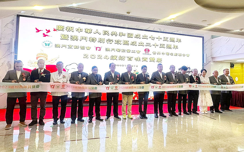 澳門烹飪協會、澳門餐飲業工會、世界中餐名廚聯合會昨日聯合舉辦「2024繽紛百味賀雙慶」美食展示活動,匯聚八十多名本地廚師參與,展出包括中菜、點心、烘焙、土生葡菜等過百道菜式。主辦單位期望透過活動交流,加強餐飲出品和服務,激勵業界進步,提升行業士氣,助力澳門「美食之都」建設。