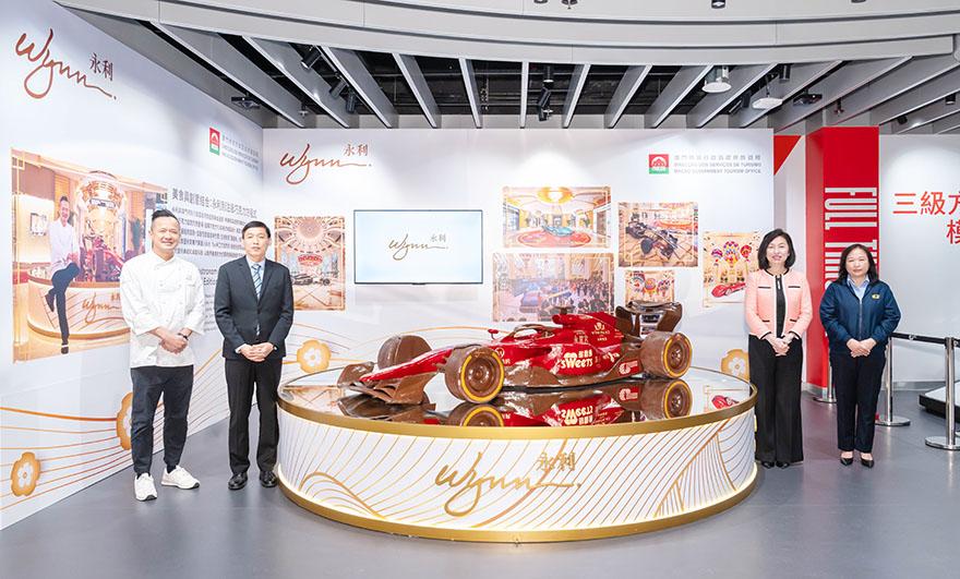 昨日(11 月 8 日),永利在澳門大賽車博物館舉辦掀幕儀式,向公眾揭曉“永利別注版巧克力 F1 超 跑”。出席儀式的嘉賓包括:澳門特別行政區政府旅遊局副局長許耀明、體育局代副局長李詩靈、永 利澳門有限公司總裁、董事會副主席兼執行董事陳志玲,以及“永利別注版巧克力 F1 超跑”創作者、 美食藝術大師 Bob Tay。