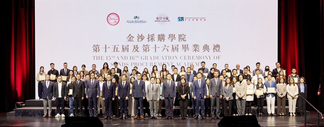 金沙採購學院畢業典禮;在金沙採購學院第十五屆及第十六屆畢業典禮上,集團嘉許73家成功畢業的本地中小微企。自2017年課程開辦以來,至今共602家本地企業參與,其中559家成功畢業。公司一直致力扶持本澳中小微企發展,金沙採購學院的培訓課程是金沙中國本地中小微企採購合作計劃的其中一環。金沙中國同場舉辦兩場盛典,讓金沙採購學院畢業的中小微企見證公司向表現傑出的本地供應商頒發獎項,從而有所得著及啟發。