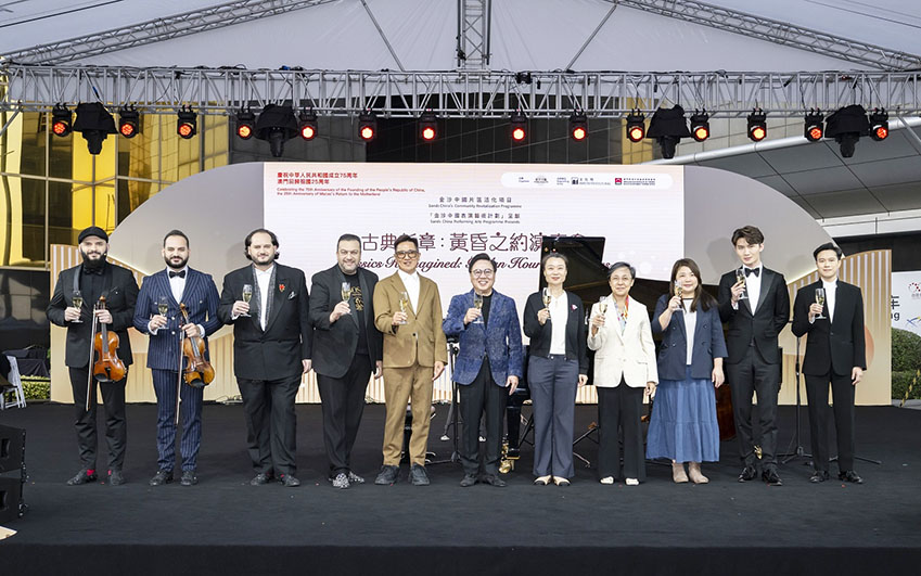 【特訊】為慶祝中華人民共和國成立75周年、澳門回歸祖國25周年 ,並作為片區活化項目其中一環,由金沙中國表演藝術計劃呈獻的「古典新章:黃昏之約演奏會」於11月30日及12月1日在澳門文化中心廣場圓滿舉行,兩天活動包括三場戶外草地演奏會以及長達兩小時的音樂大師班,合共吸引逾2,600名觀眾在悠揚樂韻下席地而坐,度過寫意悠閒的日落時光。