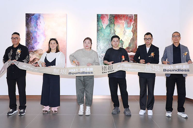 《無垠——褚超澳門個展》於昨日假澳門葡京人藝術空間正式開幕,邀請了社會各界人士出席,當中包括:澳門葡京人董事江陽、澳門葡京人市場推廣及零售發展部副總裁項成、上海Liang Project創始人及策展人梁勤、CHIIIDesign 創意總監及澳門理工大學校董會成員劉華智、藝術家褚超先生聯同華氏畫廊創始人及首席藝術總監華雨舟,共同為展覽揭幕。
