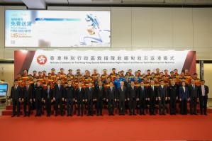 李家超致辭時表示,此次救援任務期間,特區救援隊共出動61次、趕赴57個地點支援及搜救。除面對餘震風險,隊員們還要克服災區高溫、交通中斷、通信受阻、基礎設施嚴重損毀等挑戰。他向救援隊隊員致敬,稱贊他們以實際行動展示生命至上的大愛精神,為他們的表現深感驕傲。