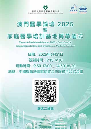 【特訊】為落實《健康澳門藍圖》所訂定的總體目標和指標,積極推動“健康社區”計劃,貫徹資源下沉至社區,擴大社區醫療效能,提升本澳醫療人員的專業素養及臨床實踐技能,推動本地醫療技術進步(詳情可參閱海報)。衛生局於6月21日(星期六)舉辦“澳門醫學論壇2025暨家庭醫學培訓基地揭幕儀式",論壇特邀多名來自內地、香港地區及本澳的權威醫學專家,透過專題演講及互動交流,為與會者帶來嶄新的醫學知識與實踐經驗。是此活動已納入持續專業發展(CPD)計劃,對象為本澳醫療人員,費用全免,歡迎報名參加,詳情如下:報名日期:6月10至18日。報名方式:登入衛生局網頁(https://www.ssm.gov.mo)點選報名連結或掃描報名二維碼填寫資料,成功者會收到簽到二維碼,額滿即止。