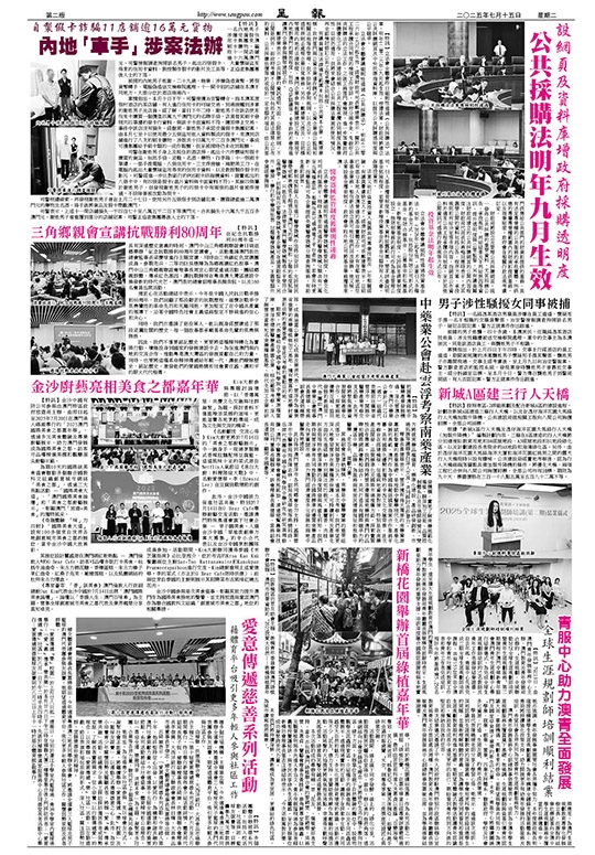 「愛意傳遞『樂』校園」於上月廿八日起一連兩日,分別於濠江小學室內籃球場、青洲中學室內籃球場舉行;「愛『義』傳承 樂共融」於本月廿六日下午三時在婦聯大廈二樓禮堂集合後上門探訪長者;「愛意傳遞『樂』社區」於八月一日下午二時半及四時半,先後於婦聯樂滿家庭服務中心及同善堂長者活動中心舉行;愛意傳遞慈善籃球友誼賽則於八月三日上午十一時於塔石體育館A館舉行。