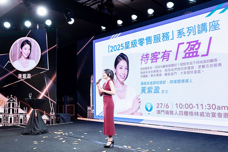 首場講座邀請了溝通表達課程導師、跨媒體傳媒人黃紫盈主講,以「待客有『盈』」為題分享如何應用有效的溝通理論提升服務及購物體驗,並透過真實個案分享,讓參加者更善於溝通,顧客盈門。