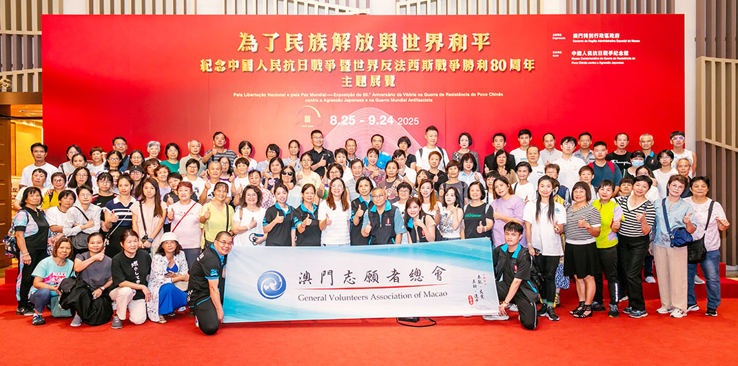 【特訊】澳門志願者總會於八月二十七及二十八日傍晚,在理事長歐鈺娜、副會長莫錦培、副理事長容永富、羅潤桂、秘書長關家莉帶領下,組織逾一百五十名志願者前往參觀“為了民族解放與世界和平——紀念中國人民抗日戰爭暨世界反法西斯戰爭勝利八十周年”展覽,參展後隨即開展主題分享會。活動旨在深化志願者對抗戰歷史的認識,傳承愛國愛澳精神。