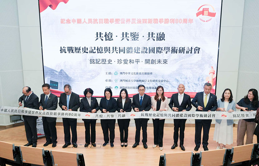 【特訊】由澳門中華文化推廣直播協會主辦,澳門城市大學海峽兩岸文化研究交流中心承辦,澳門特別行政區政府文化發展基金資助的“紀念中國人民抗日戰爭暨世界反法西斯戰爭勝利80周年,共憶•共鑒•共融─抗戰歷史記憶與共同體建設國際學術研討會”29日上午在澳門城市大學何賢會議中心舉行開幕式。研討會邀請來自內地、澳門、台灣和東南亞等相關領域學者,值中國人民抗日戰爭暨世界反法西斯戰爭勝利八十周年之際,以“共憶•共鑒•共融”為精神主線,追溯抗戰歷史,警醒珍愛及維護和平的重要性。