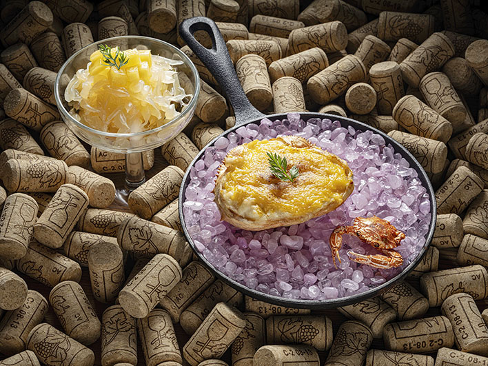 「葡國餐廳」憑藉主廚團隊卓越的烹飪技藝,自開業以來深獲饕客青睞;更連續兩年榮獲大眾點評「黑珍珠一鑽餐廳」(2024-2025),成為榜單上唯一的葡國菜代表。招牌菜式「葡式燒乳豬」特別選用兩個月齡的乳豬做成的無骨乳豬卷,講究精細烤製而成;除經典葡式菜餚「酥炸馬介休球」外,另一道主打菜式「焗釀蟹蓋」以濃厚焗釀蟹肉佐以清新柚子沙律,冷熱之間帶來豐富的層次平衡。