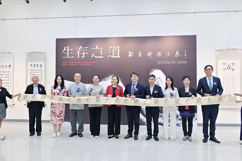 【特訊】時值金秋,翰墨飄香。9月30日,"生存之道——邵玉錚書法展"在澳門教科文中心展覽廳隆重開幕。本次展覽由澳門國際當代藝術會及國際藝術家發展聯合會主辦,美圖媒體工作室與澳門青年展藝協會協辦,彙集了著名書法家邵玉錚以《道德經》為主題創作的八十五幅書法作品,所有作品均為藝術家專為本次展覽精心創作。中央人民政府駐澳門特別行政區聯絡辦公室宣傳文化部副處長徐東傑、澳門基金會行政委員會代主席鐘怡、澳門文化界聯合總會理事長李自松、永利澳門有限公司綜合度假村市場策略行銷總裁鄒文瑜、澳門美術協會秘書長劉春紅、澳門書法院主席歐耀南、澳門道教協會監事長林彩英、精創音樂文化協會會長李周麗華、國際藝術家發展聯合會會長黎翰澄等各界代表蒞臨現場,與書法愛好者共同見證展覽開幕。