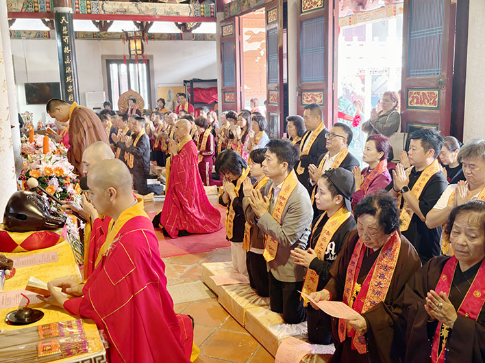 是次法會莊嚴隆重,儀式於昨日上午十時舉行,由向願大和尚主持。在莊嚴儀軌中,主法僧團引領眾嘉賓及信眾虔誠誦經祈福,鐘磬和鳴,梵音繚繞,現場祥和肅穆。法會凝聚十方善信之願力,共祈國泰民安、澳門繁榮,深刻彰顯媽祖文化與觀音信仰共通的慈悲為怀、和諧共生之內涵。