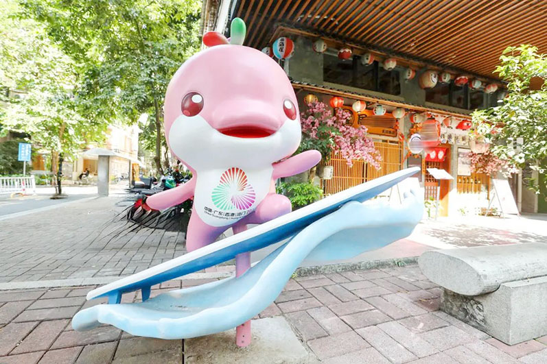 有不少居民駐足觀看,也有人特地過來打卡拍照。“讓老廣淚目的牆繪。”大家對著這些吉祥物談論,那些關於往屆體育盛事的記憶也隨之浮現。