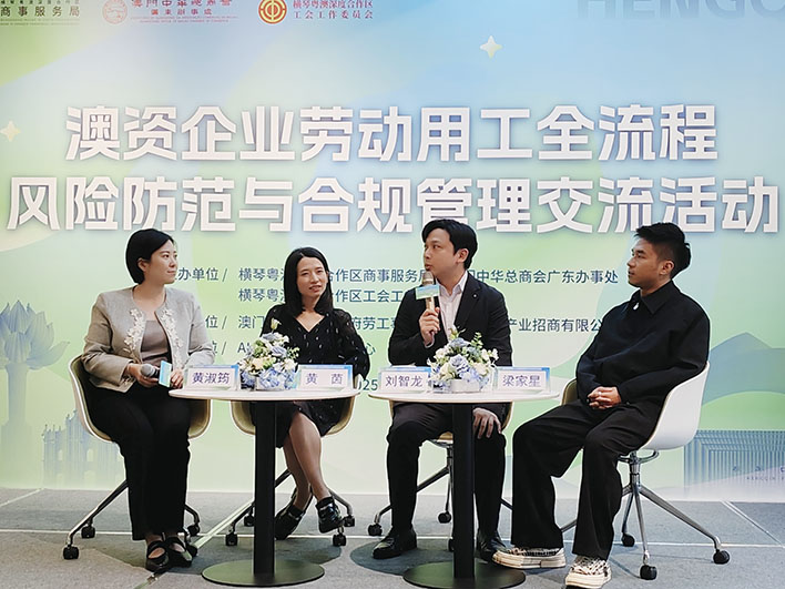 黃仁民表示,澳門中總廣東辦與商事服務局共建宣導站以來,雙方密切協作,穩步推進澳琴勞動權益保障工作,强化企業法治建設和依法用 工水平。本次活動聚焦澳資企業勞動用工風險防範與合規管理,期望與會嘉賓充分互動、深入交流,提升應對勞動用工法律風險和勞動爭議的能力,共建澳琴融合新未來。