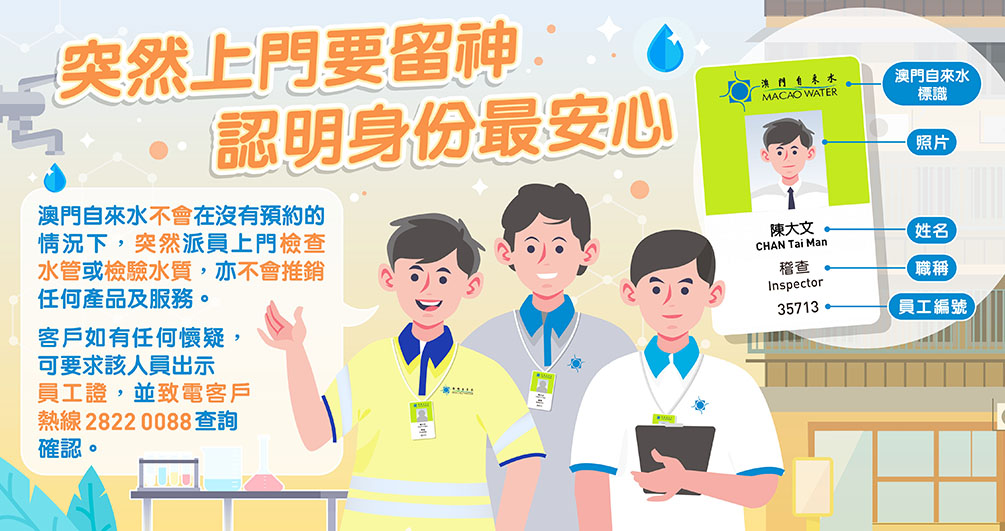 最後,澳門自來水提醒客戶面對任何上門服務應保持警惕,細緻查問。