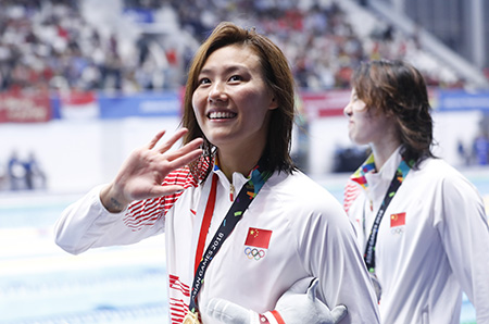 【中新社雅加達8月21日電】(盧岩 馬元豪)在21日晚進行的雅加達亞運會女子50米仰泳決賽中,中國名將劉湘憑藉26秒98的出色成績打破世界紀錄奪冠,“洪荒少女”傅園慧獲得亞軍,中國隊在這一項目自多哈亞運會起,實現“四連冠”。