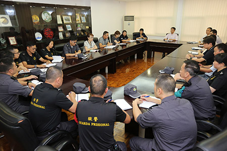 【特訊】為加強懲教管理局人員在緊急事故發生時的應變和溝通協調能力,懲教管理局於二十七日下午進行火警演習,模擬路環監獄發生火警。過程中模擬有職員和在囚人受傷,並有在囚人情緒不穩,以及有家屬和記者前來路環監獄查詢事故。演習完結後,局長程况明隨即召開檢討會議,檢視和總結演習情況,冀能汲收是次經驗,以優化相關指引及措施。整個火警演習歷時四十六分鐘,合共逾九十名職員及三十七名在囚人參與,過程順利且達到預期效果。