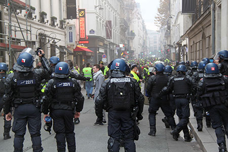 通向總統府的聖奧諾雷市郊路,已被警方封鎖。防暴警察不斷驅趕示威者,讓他們遠離總統府等場所。警方也在總統府附近設置了水炮,在人群大量聚集時使用水炮驅散。