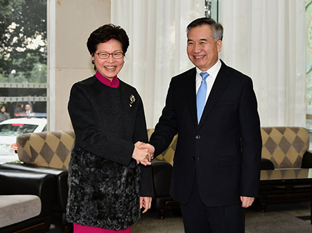 當天下午,林鄭月娥乘坐高鐵前赴廣州,與廣東省委書記李希和廣東省省長馬興瑞會面,討論在粵港澳大灣區發展中兩地各項合作事宜。