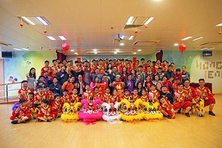 【特訊】澳門鴻威龍獅體育會及美高梅金獅體育會於2月9日到訪澳門扶康會轄下康盈中心為學員們表演舞獅,他們一行五十多人由體育會創辦人兼理事長麥旨樑師傅帶領,以心獅傳承,從小開始,進行義演。在一片濃厚節日氣氛洋溢下,一眾幼獅隊為學員們努力地演出一段段精彩的舞獅表演。