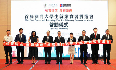 是次參與招聘的大灣區企業涵蓋多個專業範疇,如網絡科技、健康科學和旅遊等,包括騰訊、華發、美的、格力、瑞吉酒店、喜來登酒店等。蘇基朗表示,舉辦是次大型的招聘會,推動澳門學子到大灣區就業發展,是澳大積極參與大灣區建設的項目之一。珠海市台港澳事務局局長鄒樺、珠海華發集團有限公司常務副總經理謝偉分別致辭,鼓勵學生把握機會,融入灣區發展事業。